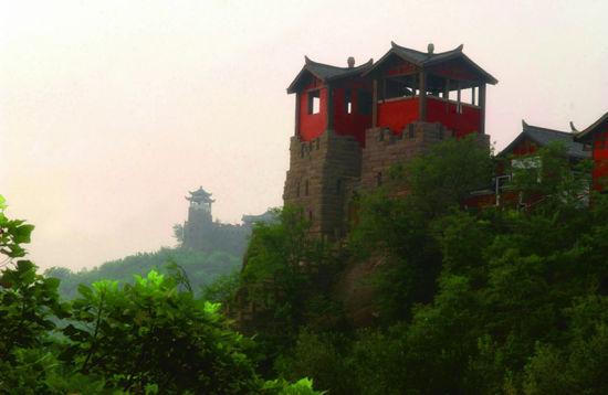 神龙山龙台碉楼 分享到新浪微博 龙头关:石头城堡的第一关 整个龙头关建造在一座巨石之上,形似龙头,气势逼人,有一夫当关万夫莫开的雄伟气势。让来犯的敌人望而生畏,龙头关可谓是石头城第一道雄关,此关以双塔式烽火碉楼为龙角,数十米的石台阶为龙鼻梁,以两个巨大的石窟为龙眼,是天龙尊者的元神化身。 在双塔式烽火碉楼悬空的中央,巴人把西周武王相赠的“文王八卦图” 悬挂其间,不但彰显出他们跟随西周“武王伐纣”的丰功伟绩,而且体现出古代巴人独特的性格。
